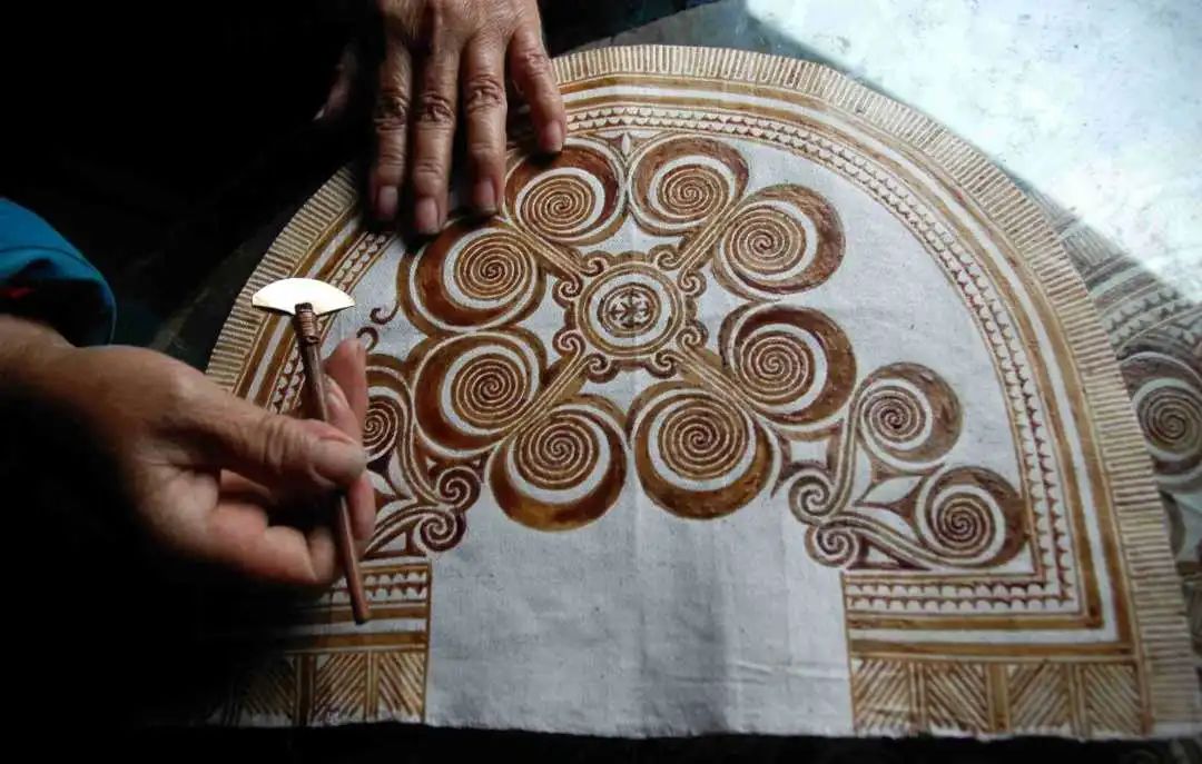 묘족여성들은 추상적인 자수를 창작하는데 라란(蜡染)도안에 그들의 내심세계를 그려내기도 합니다.