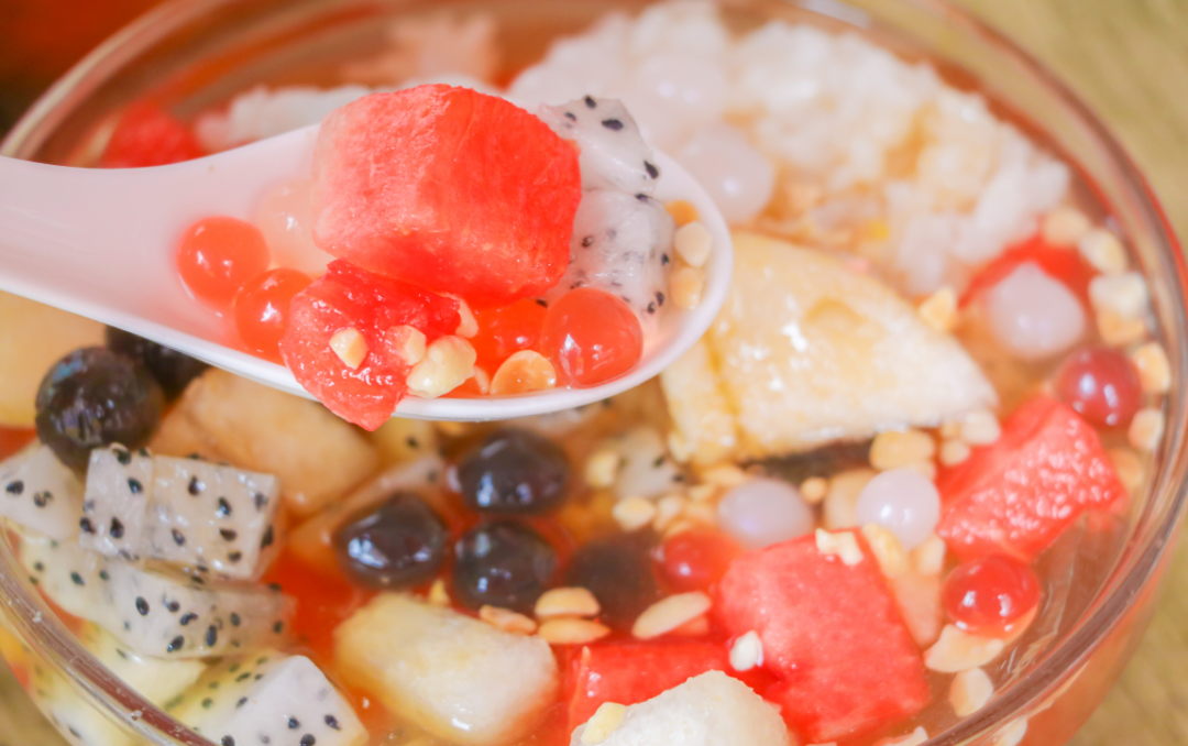 비주얼로 말하자면 맑고 투명하며 시원한 얼음물에 포함된 수정 같이 흰색을 띄는 핑뻔… 식감을 따지면 부드럽고 매끄럽고 젤리처럼 탄성이 매끄럽습니다. 맛으로 말하자면 달콤하고 더위를 식히고 풍부한 재료와 함께 식감이 더욱 뚜렷합니다. 영양으로 따지면 풍부한 과일은 충분한 비타민과 섬유질을 제공해 살이 찌지 않습니다.