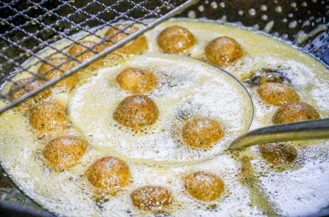 방금 튀겨낸 두부완자는 겉면은 고온에 튀겨냈기에 기름이 톡톡튀기는 소리가 들려오는데 황금처럼 튀겨진 두부완자는 아무리 맛있더라도 급하게 입에 넣지 말고 잠깐은 식힌후 소스를 찍어 맛보면 그야말로 환상적인 맛입니다!
