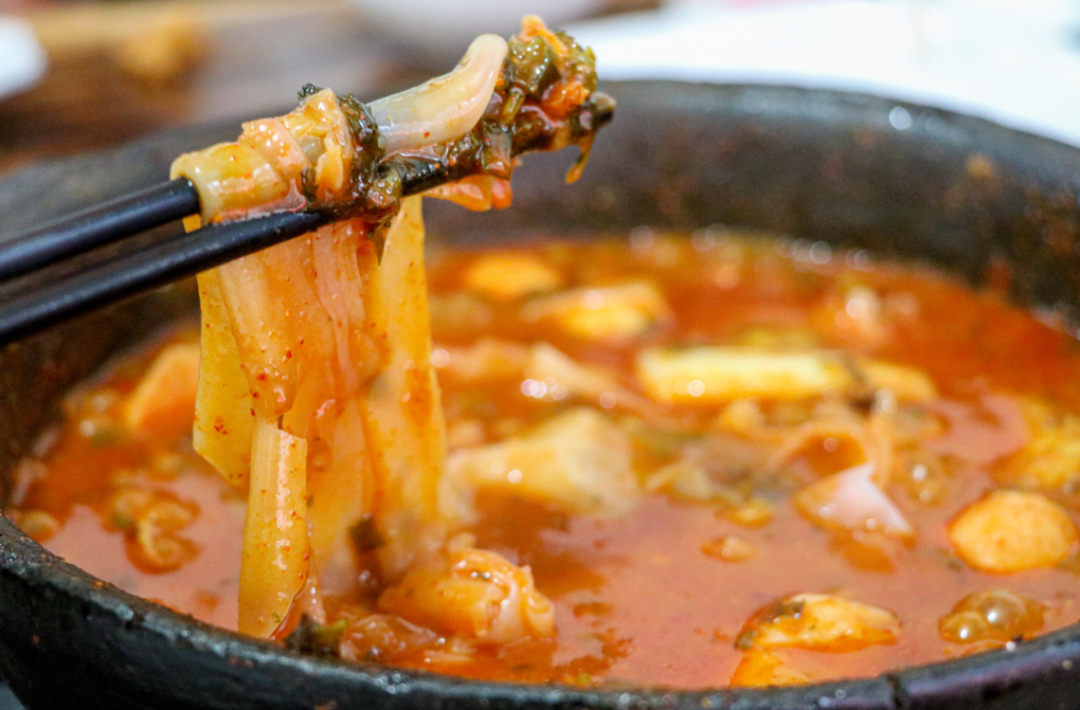 국물이 마라(麻辣)든 신맛이든 국수와 유편, 연근, 떡, 토란 등 재료를 넣고 끓이면 맛있게 한끼를 먹을 수 있는데 가격도 저렴하고 풍성하고 맛도 좋습니다. 둬둬펀 재료중에 필수로 국수는 들어가야합니니다.